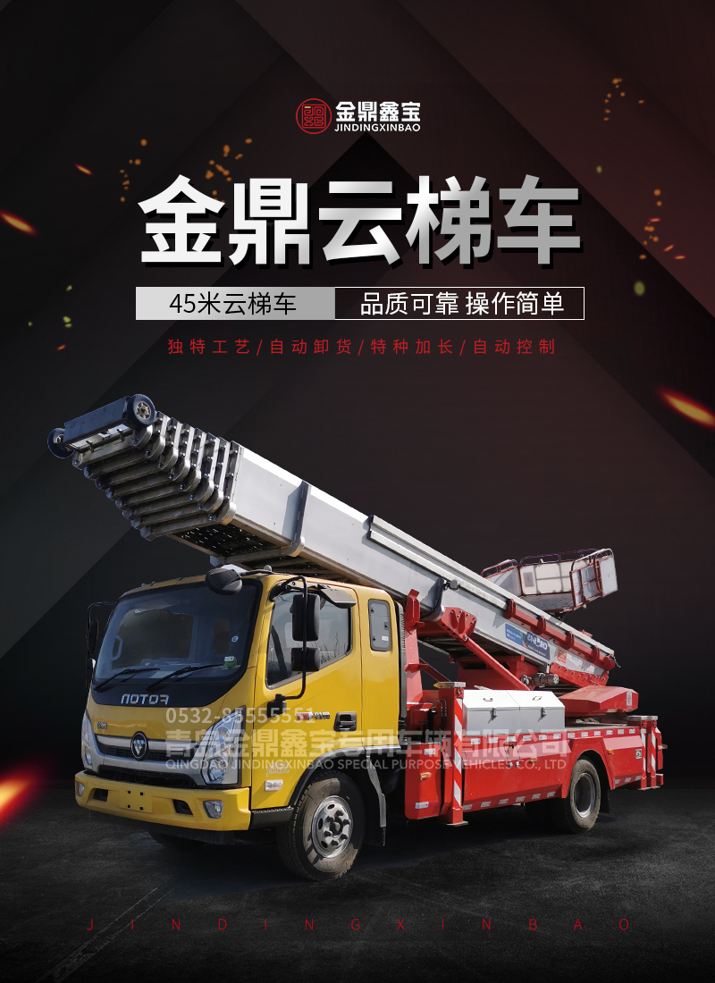 作業(yè)范圍可達45米高,青島金鼎鑫寶云梯車整體采用韓國原裝進口梯臂,最大承載貨物重量400公斤。